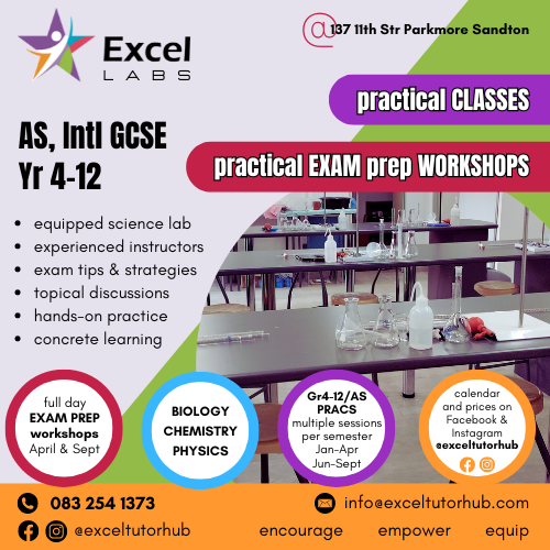 Excel LABS is a provider of practical science lessons, in Parkmore, Sandton, Johannesburg. We offer practical classes for children from age 10 years to A-Level learners.